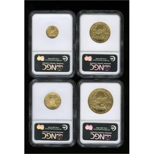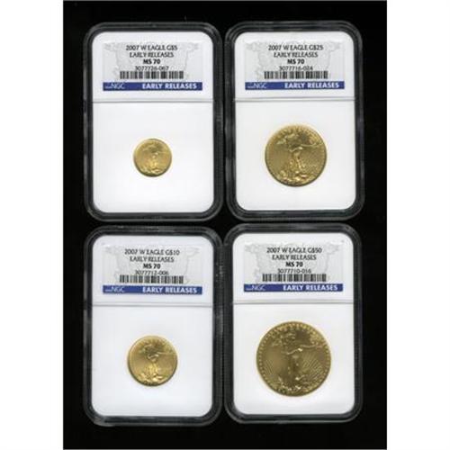 <B>2007-W $5 Tenth-Ounce American Gold Eagle MS70 NGC; 2007-W Quarter-Ounce American Gold Eagle MS70 NGC; 2007-W Half-Ounce American Gold Eagle MS70 NGC; </B></I>and a <B>2007-W One-Ounce American Gold Eagle MS70 NGC. </B></I>All Early Releases coins. <BR><BR><b>Shipping:</b> Coins & Currency (<a target="_blank" href="http://www.heritageauctions.com/common/shipping.php">view shipping information</a>)