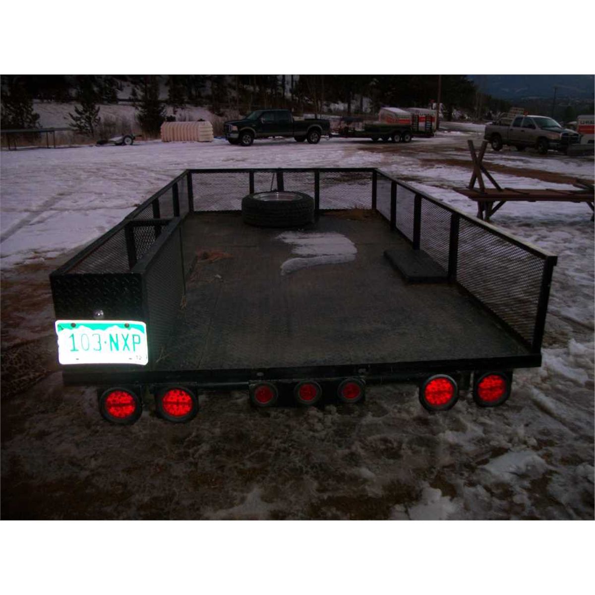 Steel deck, expanded wire side rails, spare tire. Good for atvs or?? No ramp. Great condition.