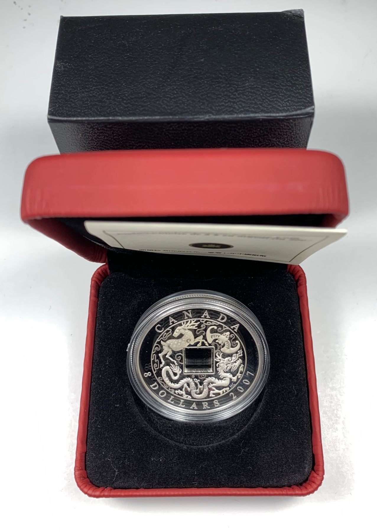 2007 $8 Canada FINE SILVER CHINESE SQUARE HOLE COIN (NO TAX)