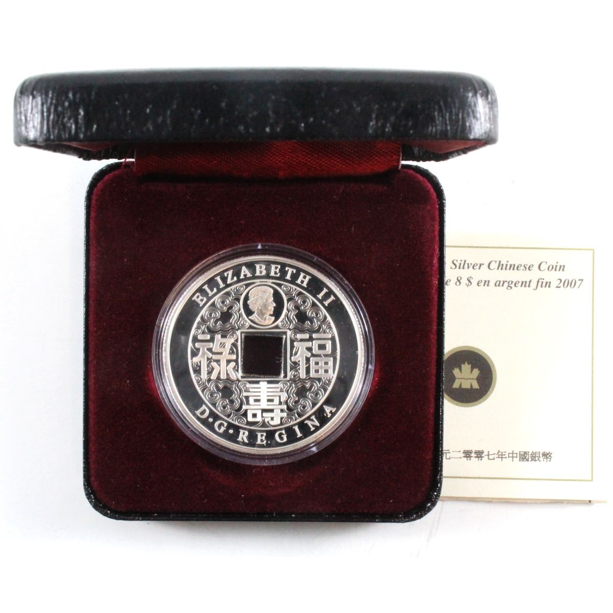 2007 $8 Fine Silver Chinese Square Hole Coin (TAX Exempt). Coin comes Encapsulated with Display Box and COA. Buyers Premium will be added on all items as per our terms of sale. We accept Paypal, Credit Card, E-Transfer Payments, Cheque or Money Orders (there is an additional 3% fee for using Paypal or Credit Card). All invoices will be emailed immediately following the auction, please contact us if you would like to pay by credit card or receive a new revised lower total for mailing in payment or sending an e-transfer (3% discount). All Items Are Sold "AS IS", no returns