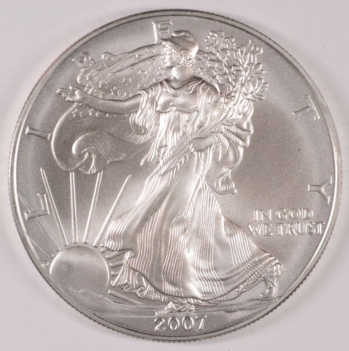 2007 AMERICAN SILVER EAGLE, GEM BU, RIGHT FROM THE MINT TUBE,