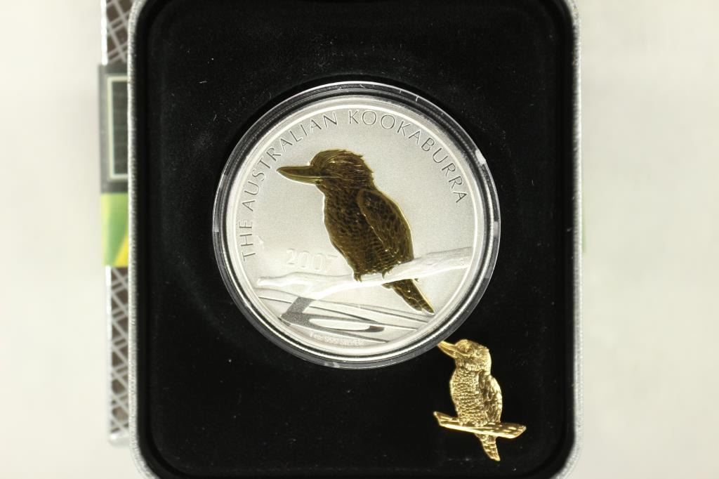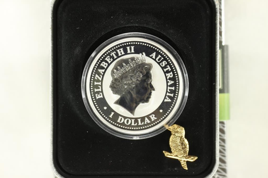 GILDED. 1 OZ. COIN AND PIN SET, ROYAL AUSTRALIAN MINT PACKAGING