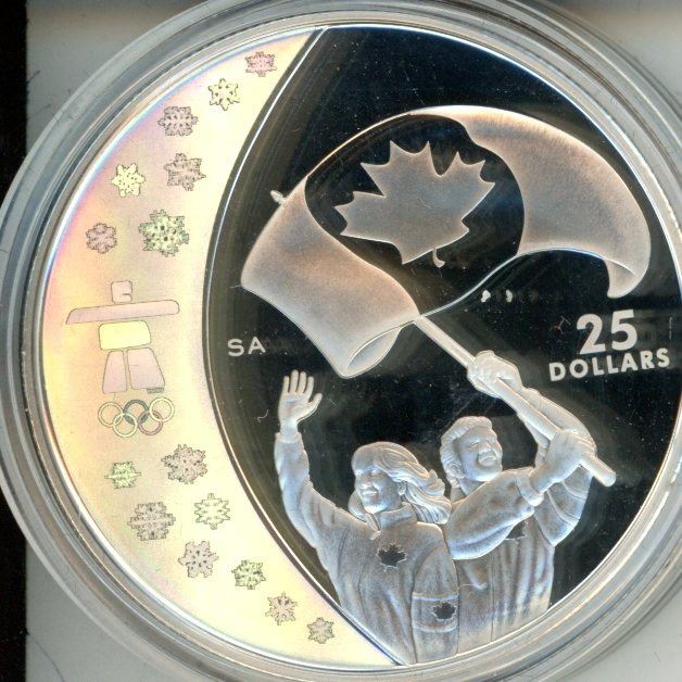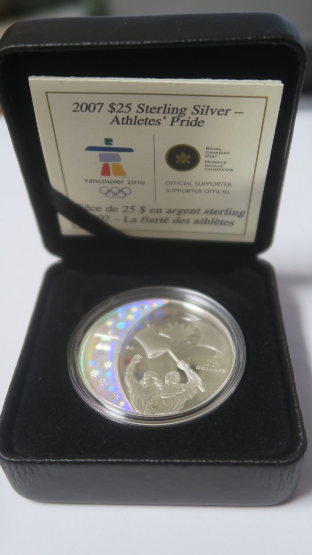 2007 Athletes Pride Hologram $25. Issued for the Vancouver Olympic Games. Sterling Silver. Proof with Ultra Heavy Cameo. Housed in its original case & box of issue.