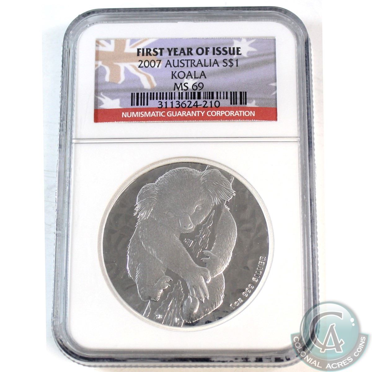 2007 Australia $1 Koala 1oz .999 Silver First Year of Issue NGC Certified MS-69 (TAX Exempt)