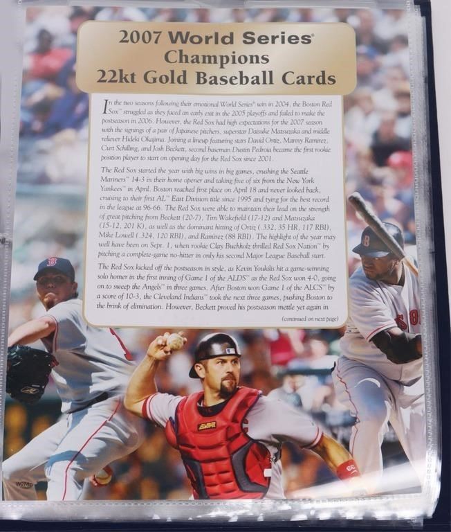 2007 Boston Red Sox 22k gold world series card collection by The Danbury Mint. Original set comes with all 36 cards. Lot comes with 11 extra duplicate cards for a total of 47 cards.