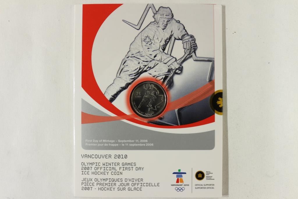 OFFICIAL 1ST DAY 25 CENT ICE HOCKEY COIN, ORIGINAL ROYAL CANADIAN MINT PACKAGING