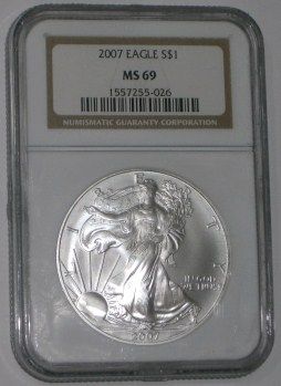 2007 CERTIFIED 1oz SILVER EAGLE *CERTIFIED BY NGC MS-69*!! SILVER EAGLE CAME OUT OF SAFE!! ***Coin, Currency & All Items Listed in this auction - Grades, Conditions and Values are not Safe Deposit Coins LLC Responsibilty. Grades, Condition and Values are determined by Consigner(s) & Buyers ONLY