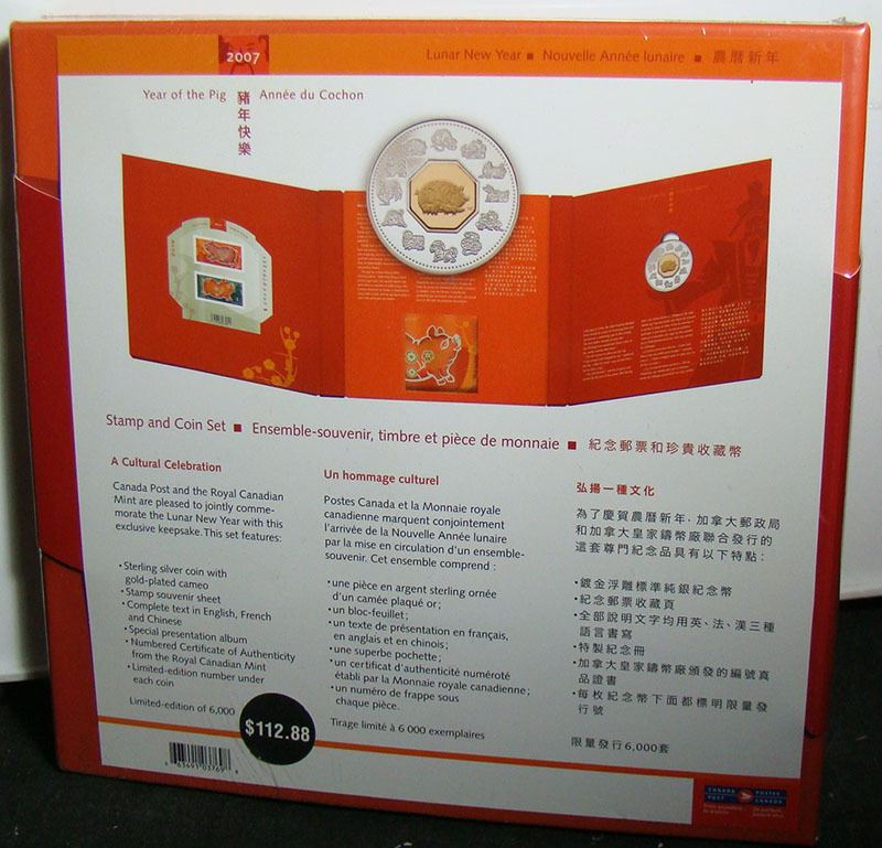 2007 Canada $15 Sterling Silver Stamp and Coin Set Year of the Pig