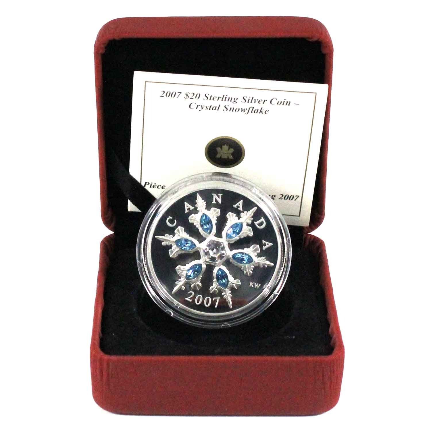 2007 Canada $20 Blue Crystal Snowflake Sterling Silver Coin (Missing outer sleeve).