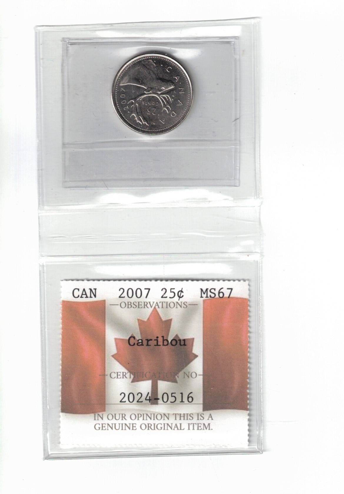 2007 Canada 25 cent Certified PCCS MS67, Professional Coin Certification System