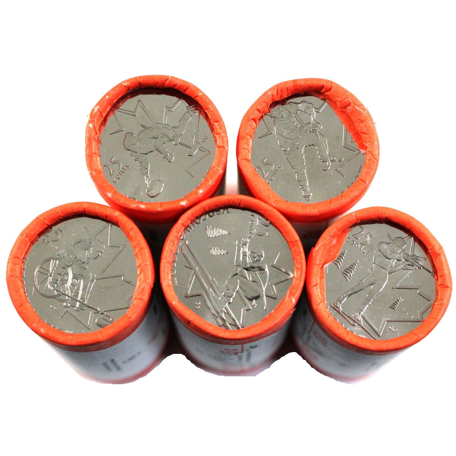2007 Canada 25-cent Olympic Commemorative Original Rolls of 40pcs - Ice Hockey, Alpine Skiing, Wheelchair Curling, Curling & Biathlon. 5 rolls