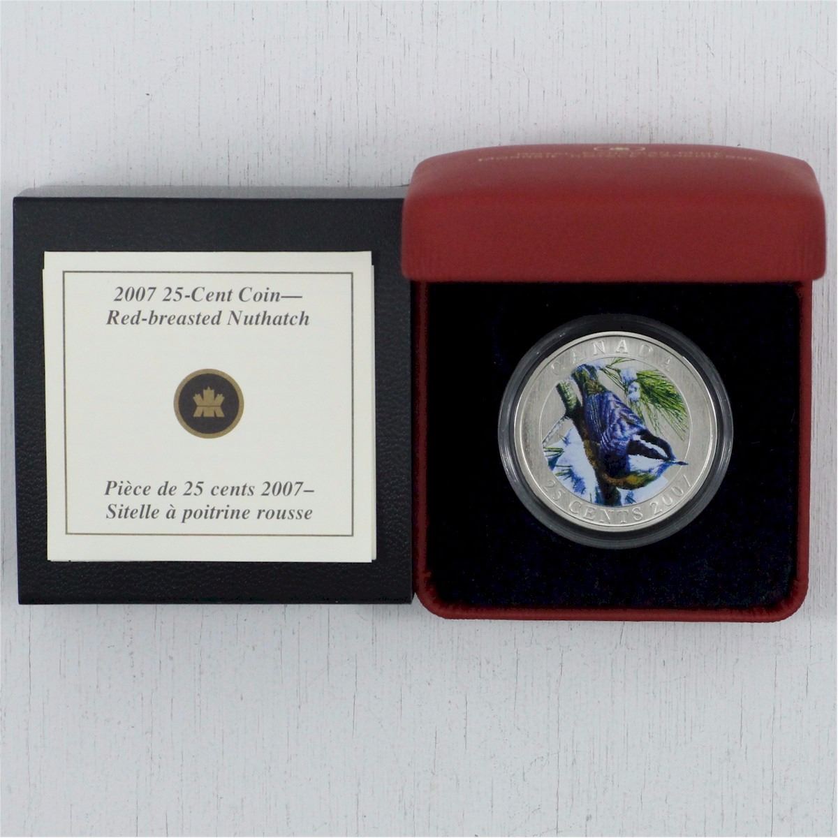 2007 Canada 25ct Red-Breasted Nuthatch coin (lightly toned). Coin comes with all original Mint packaging including Certificate of Authenticity. Buyers Premium will be added on all items as per our terms of sale. We accept Paypal, Credit Card, E-Transfer Payments, Cheque or Money Orders (there is an additional 3% fee for using Paypal or Credit Card). All invoices will be emailed immediately following the auction, please contact us if you would like to pay by credit card or receive a new revised lower total for mailing in payment or sending an e-transfer (3% discount). All Items Are Sold "AS IS", no returns