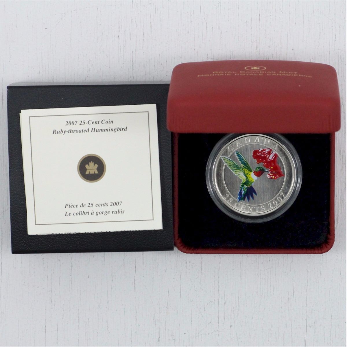 2007 Canada 25ct Ruby-Throated Hummingbird coin. (lightly toned) Coin comes with all original Mint packaging including Certificate of Authenticity. Buyers Premium will be added on all items as per our terms of sale. We accept Paypal, Credit Card, E-Transfer Payments, Cheque or Money Orders (there is an additional 3% fee for using Paypal or Credit Card). All invoices will be emailed immediately following the auction, please contact us if you would like to pay by credit card or receive a new revised lower total for mailing in payment or sending an e-transfer (3% discount). All Items Are Sold "AS IS", no returns