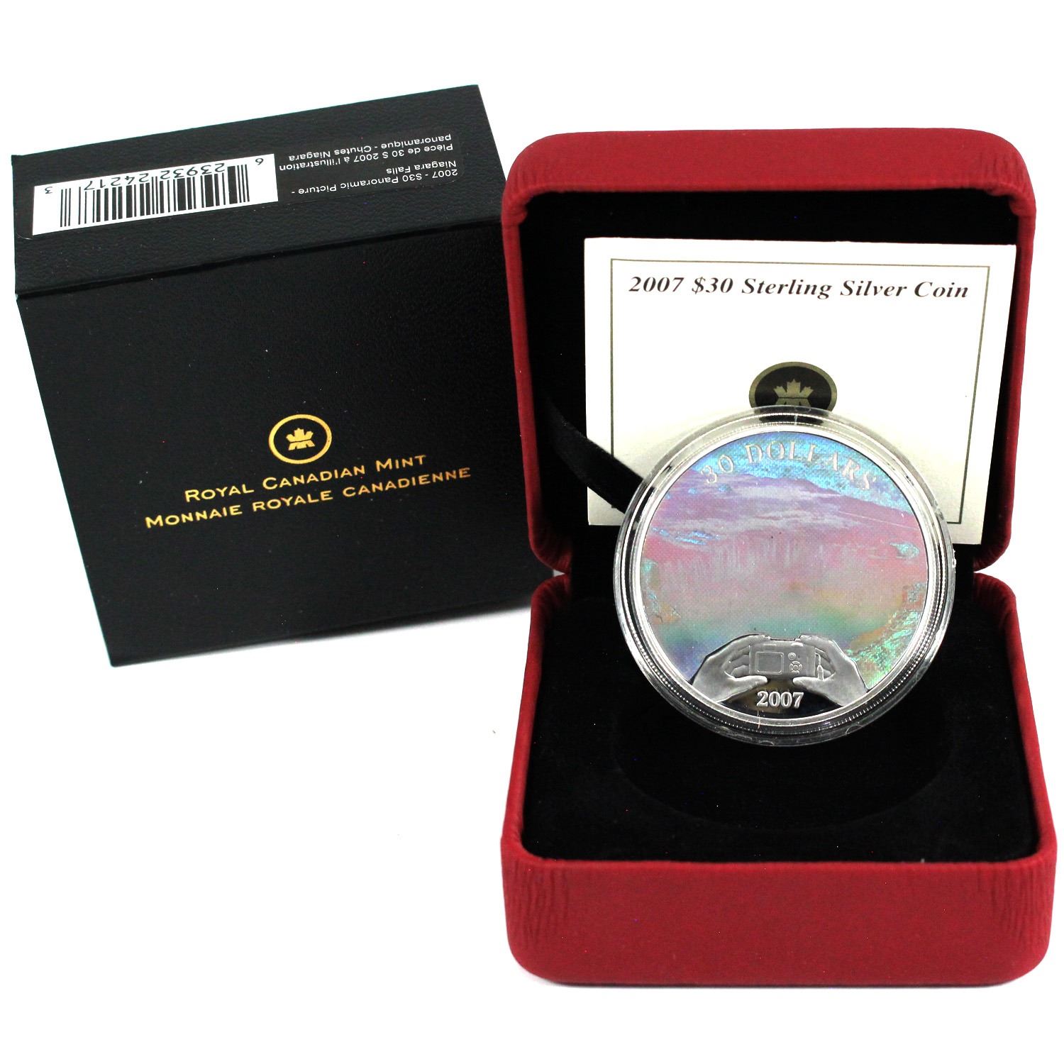 2007 Canada $30 Panoramic Camera - Niagara Falls Sterling Silver Hologram Coin (Light scratch on coin & lightly toned on obverse).