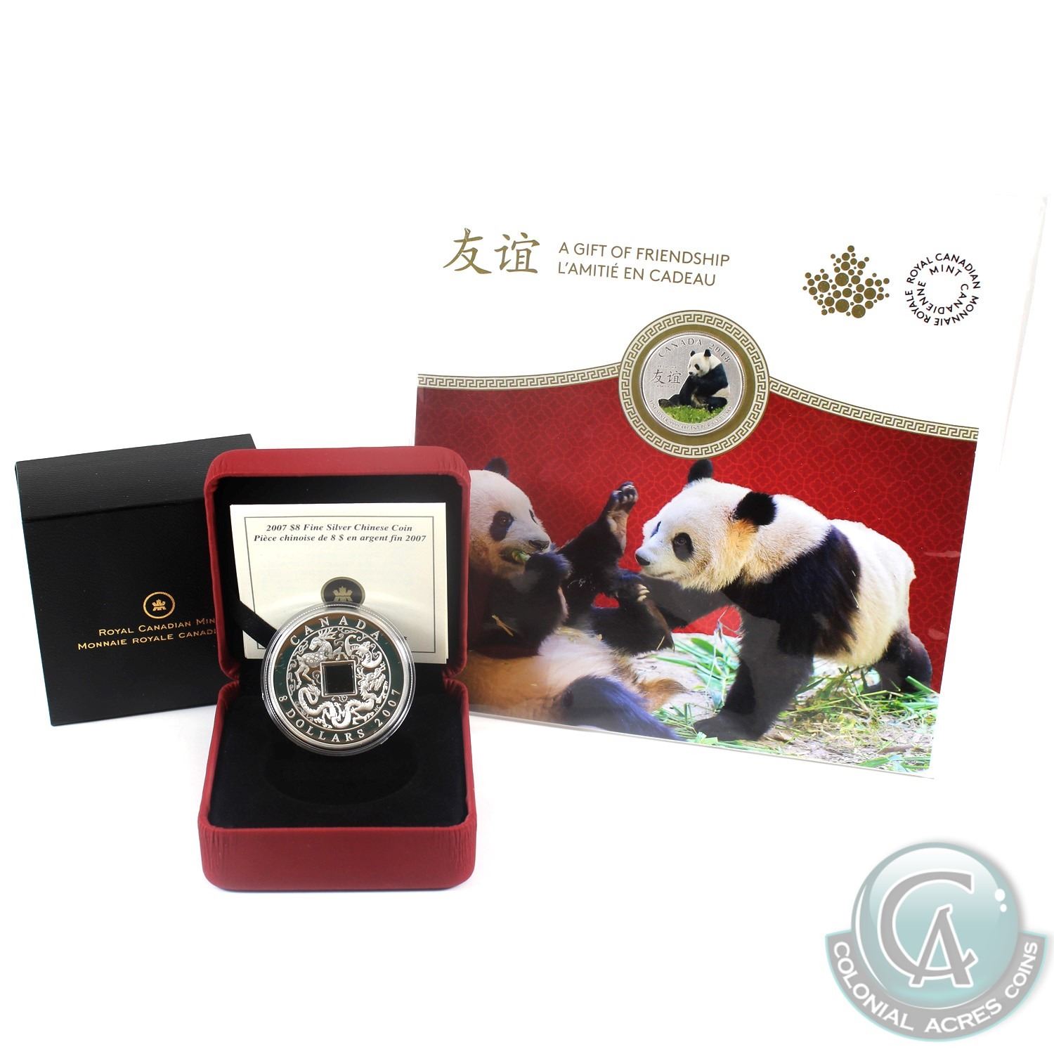 2007 Canada $8 Chinese Square Hole Coin & 2018 $8 The Peaceful Panda, A Gift of Friendship Fine Silver Coins. 2pcs (TAX Exempt)