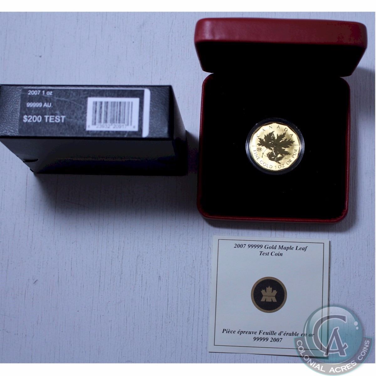 2007 Canada .99999 $200 Gold Maple Leaf Test token coin with Privy Mark in all original packaging. (TAX Exempt) Very tough test coin to find.