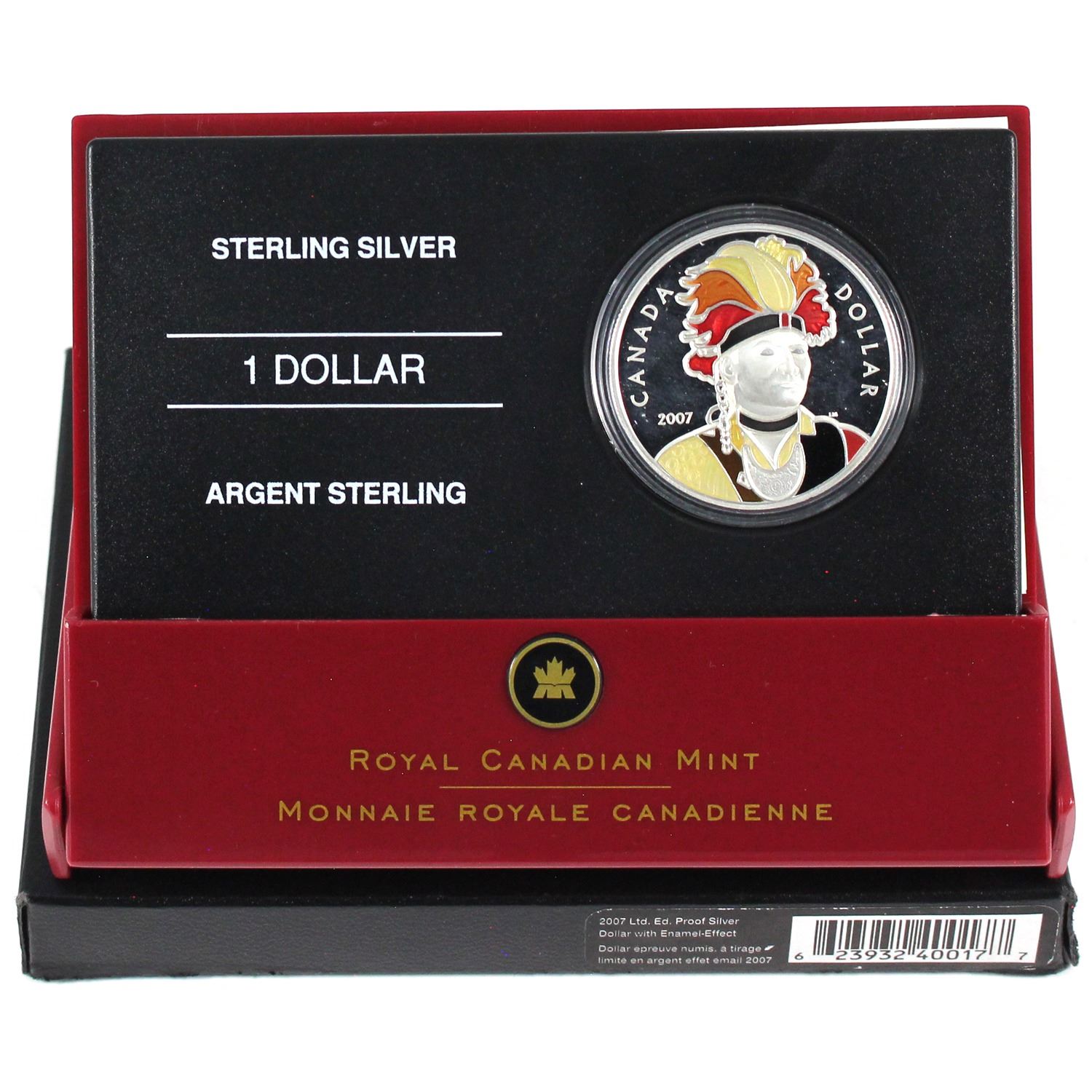 2007 Canada Thayendanegea Enamelled Proof Silver Dollar. This highly sought after coin has all of its original packaging, and also toning and marks.