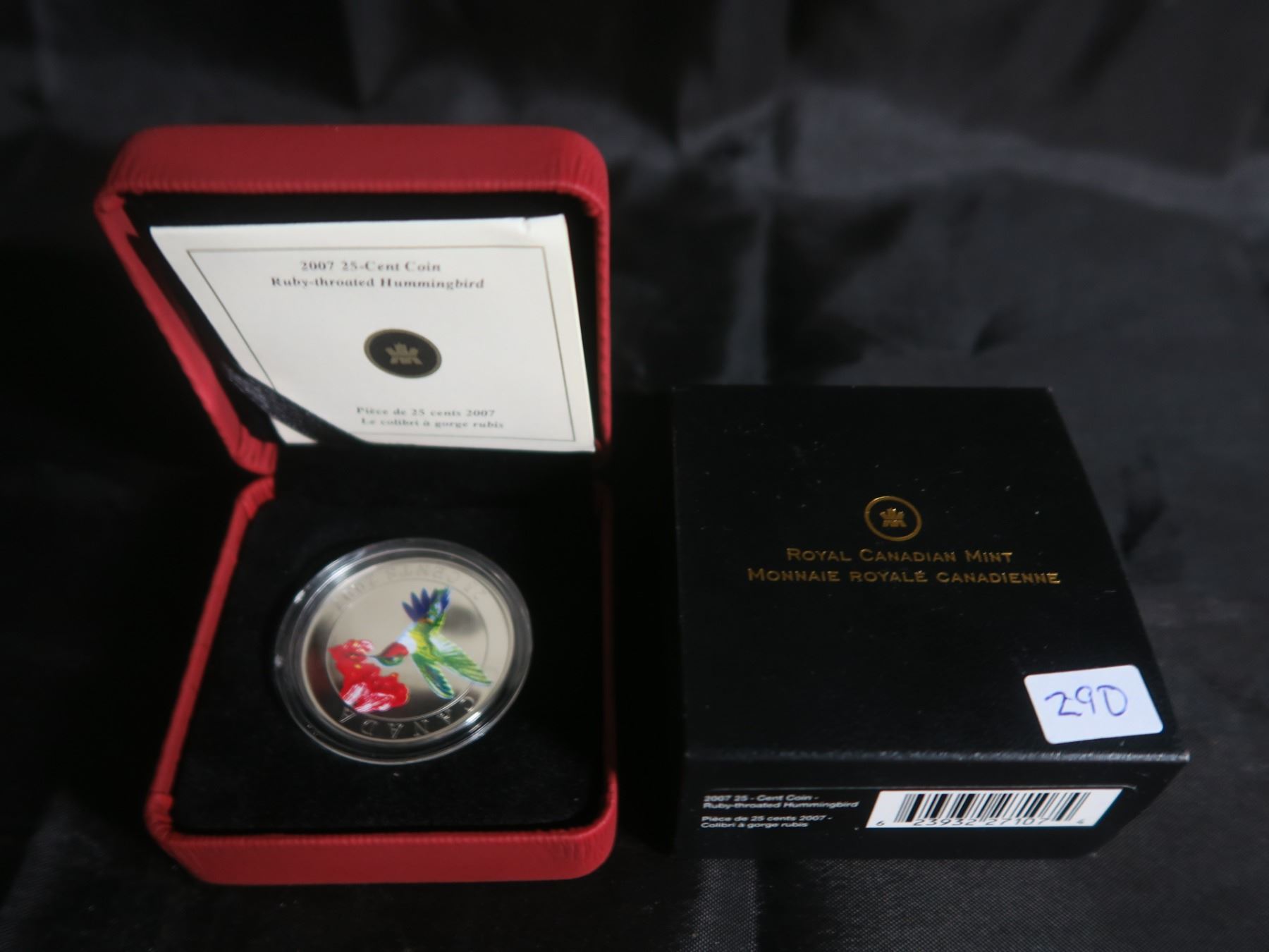 2007 Canadian 25 Cent Coin Colored Ruby Throated Hummingbird In case