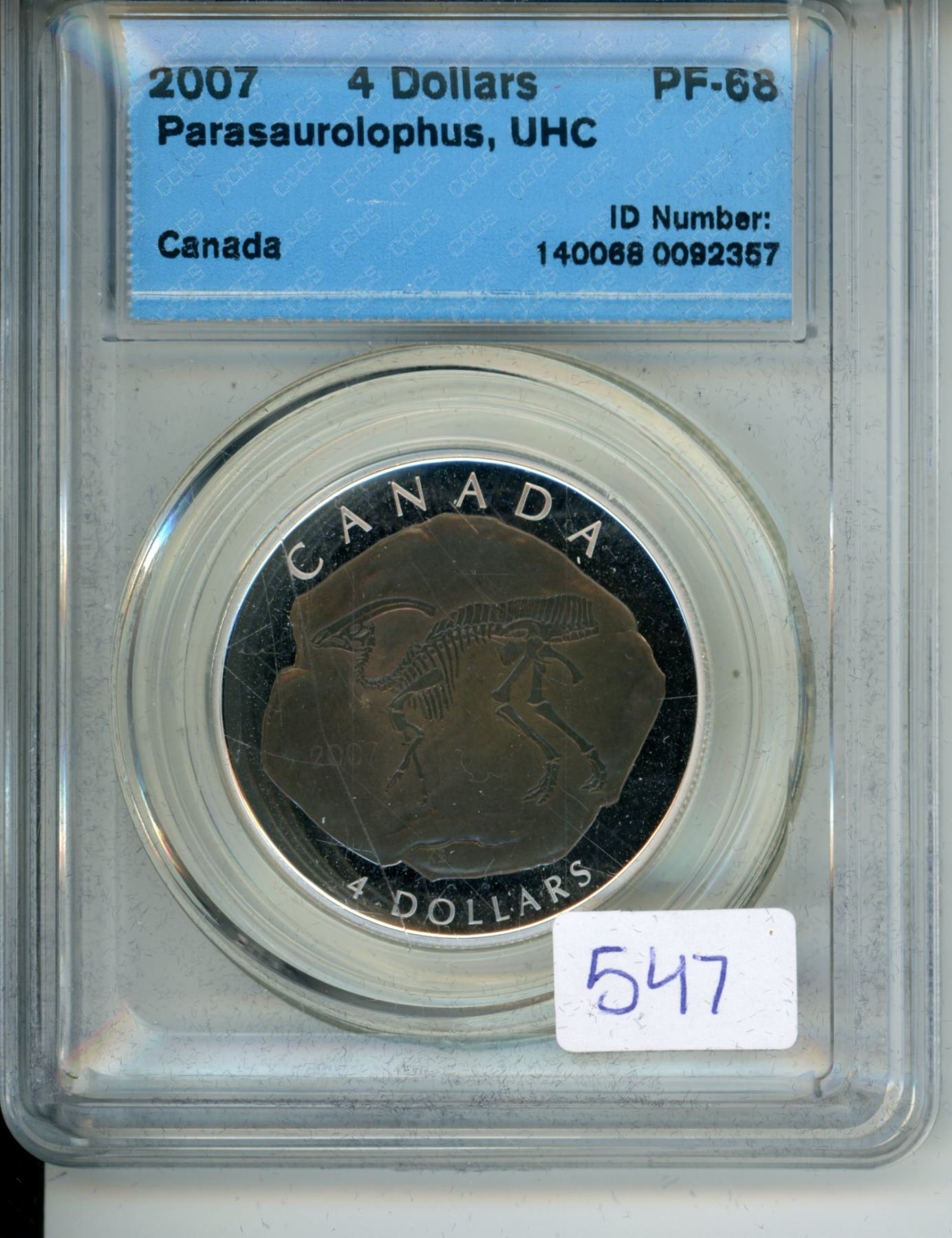 2007 Canadian CCCS Graded 4 Dollar Coin - PF-68, Parasaurolophus, UHC