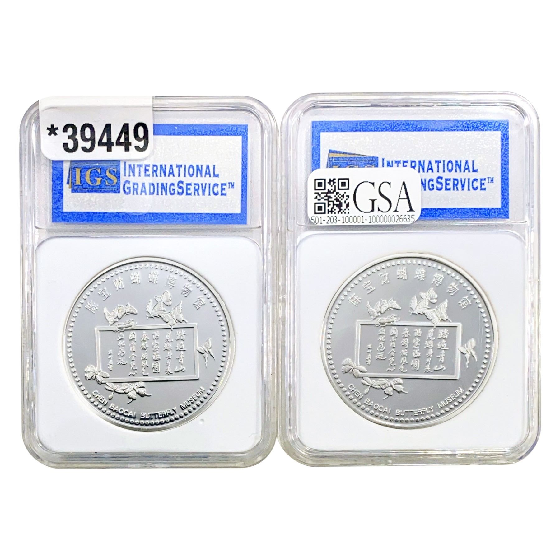 COINS AND CURRENCY LISTED IN GSA’S CATALOG AS GRADED AND ENCAPSULATED BY PCGS, NGC, ANACS, ICG, PCGS CURRENCY, PMG, PCGS BANKNOTE GRADING, CMC OR ANY OTHER THIRD-PARTY GRADING SERVICE ARE LIKEWISE SOLD “AS-IS” EXCEPT AS EXPRESSLY SET FORTH HEREIN. ALL THIRD-PARTY GRADING SERVICE GUARANTEES, INCLUDING AUTHENTICITY, ARE THE SOLE RESPONSIBILITY OF THE THIRD-PARTY GRADING SERVICE AND NOT WARRANTIES OR GUARANTEES OF GSA. BIDDERS SHOULD CONTACT THESE THIRD-PARTY GRADING SERVICES DIRECTLY WITH RESPECT TO ANY CLAIMS OR QUESTIONS THEY MAY HAVE CONCERNING THEIR GUARANTEES AND WARRANTIES. BIDDERS ACKNOWLEDGE AND AGREE THAT AUCTIONEER IS NOT BOUND BY OR LIABLE FOR ANY OPINION OR CERTIFICATION BY ANY THIRD-PARTY GRADING SERVICE. REMOVAL OF A PRODUCT FROM ITS PROTECTIVE CASING OR HOLDER OR ALTERATION OF ANY COIN HOLDER WAIVES ALL RIGHTS CONCERNING THE PRODUCT CONTAINED THEREIN.