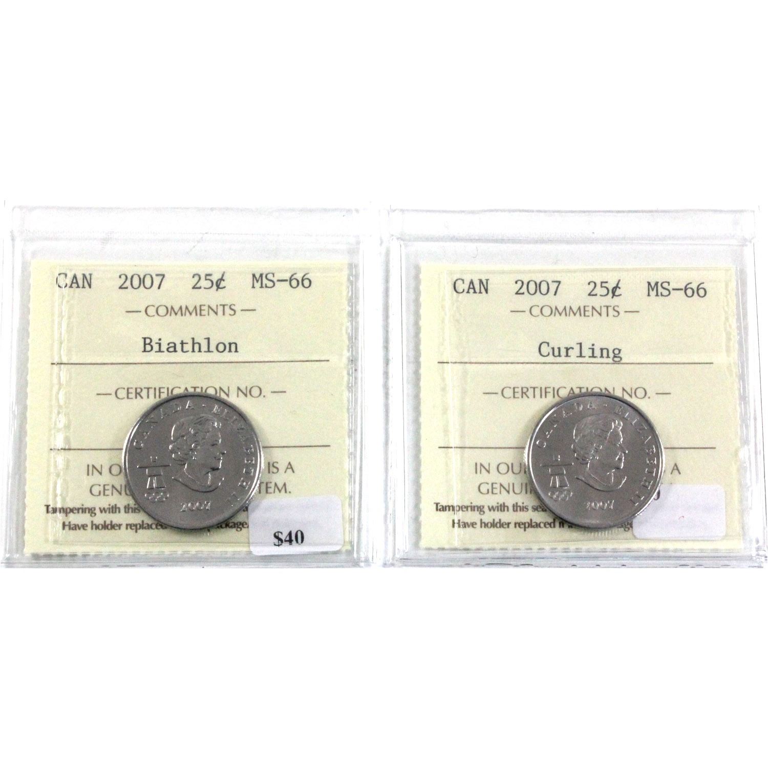 2007 Curling & 2007 Curling 25-cent ICCS Certified MS-66. 2pcs
