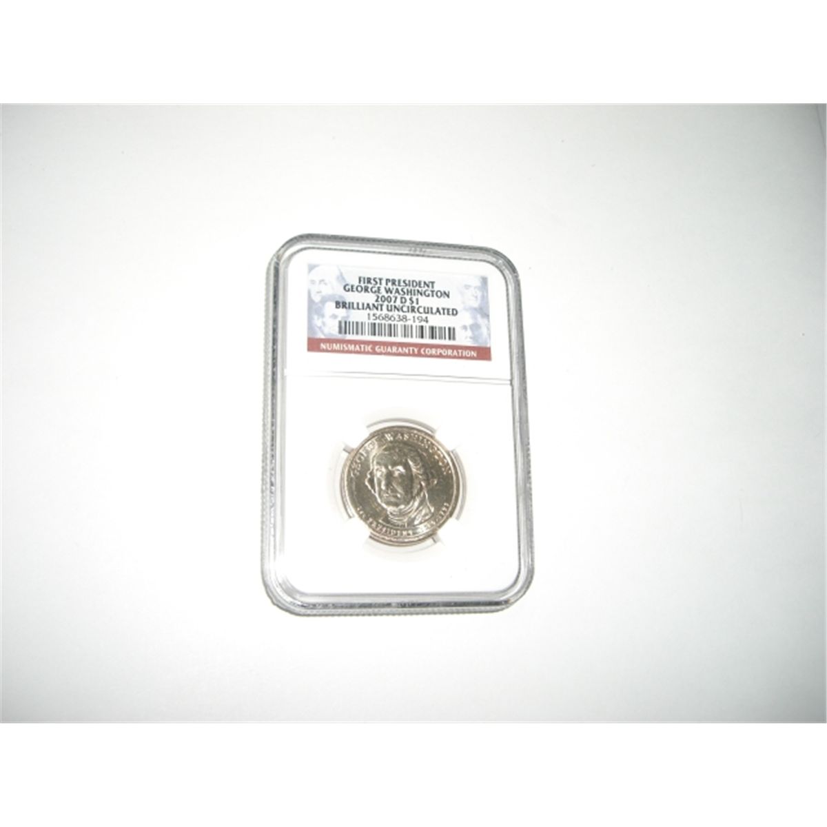 2007-D $1 First President "GEORGE WASHINGTON" *CERTIFIED BY NGC BRILLIANT UNCIRCULATED*!! ***Coin, Currency & All Items Listed in this auction - Grades, Conditions and Values are not Safe Deposit Coins LLC Responsibilty. Grades, Condition and Values are determined by Consigner(s) & Buyers ONLY***