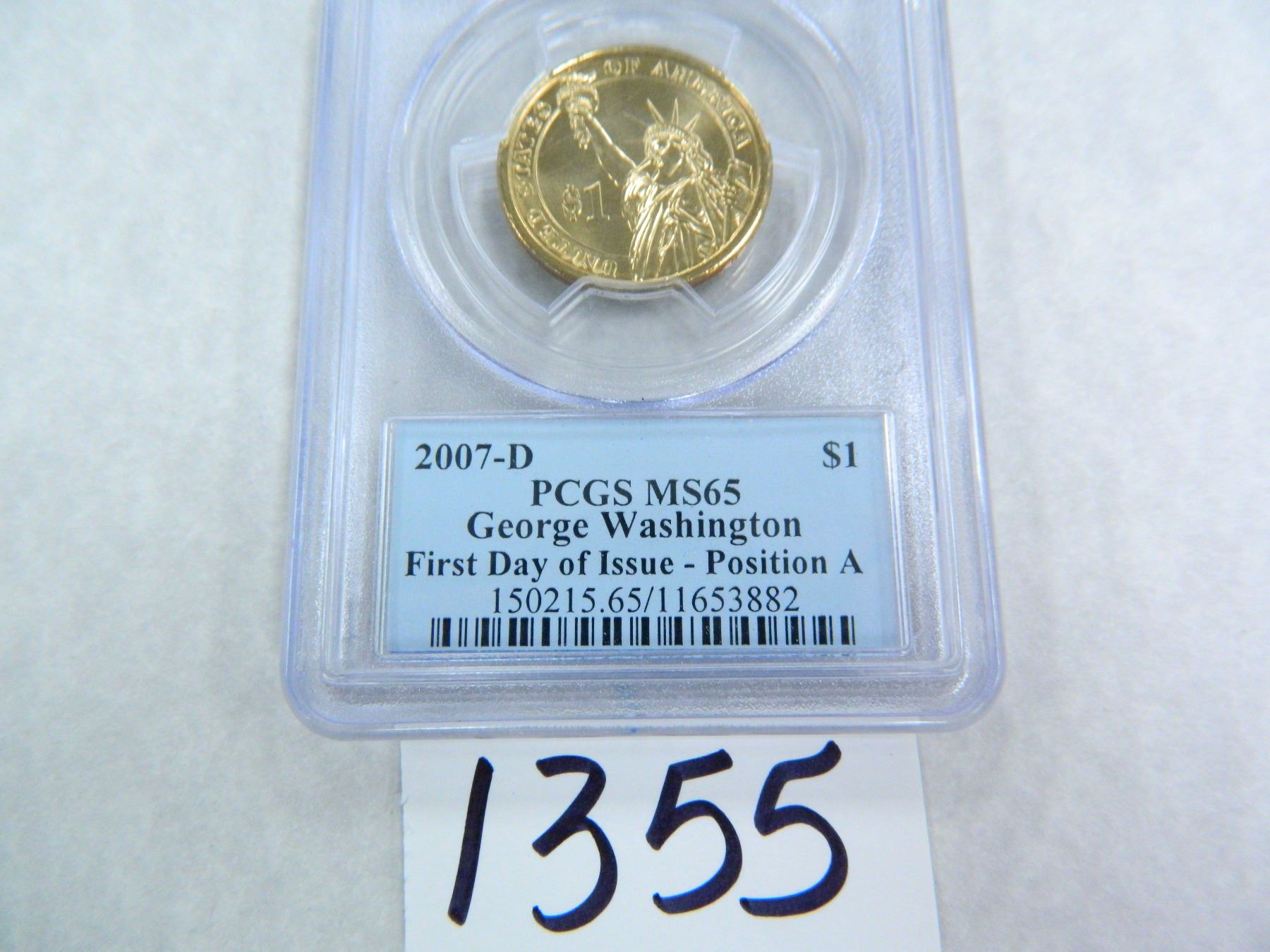 2007-D George Washington Dollar, First Day of Issue Position A, PCGS Graded MS65