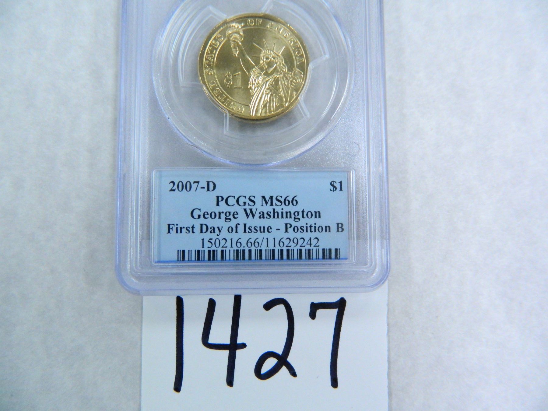 2007-D George Washington Dollar, First Day of Issue Position B, PCGS Graded MS66