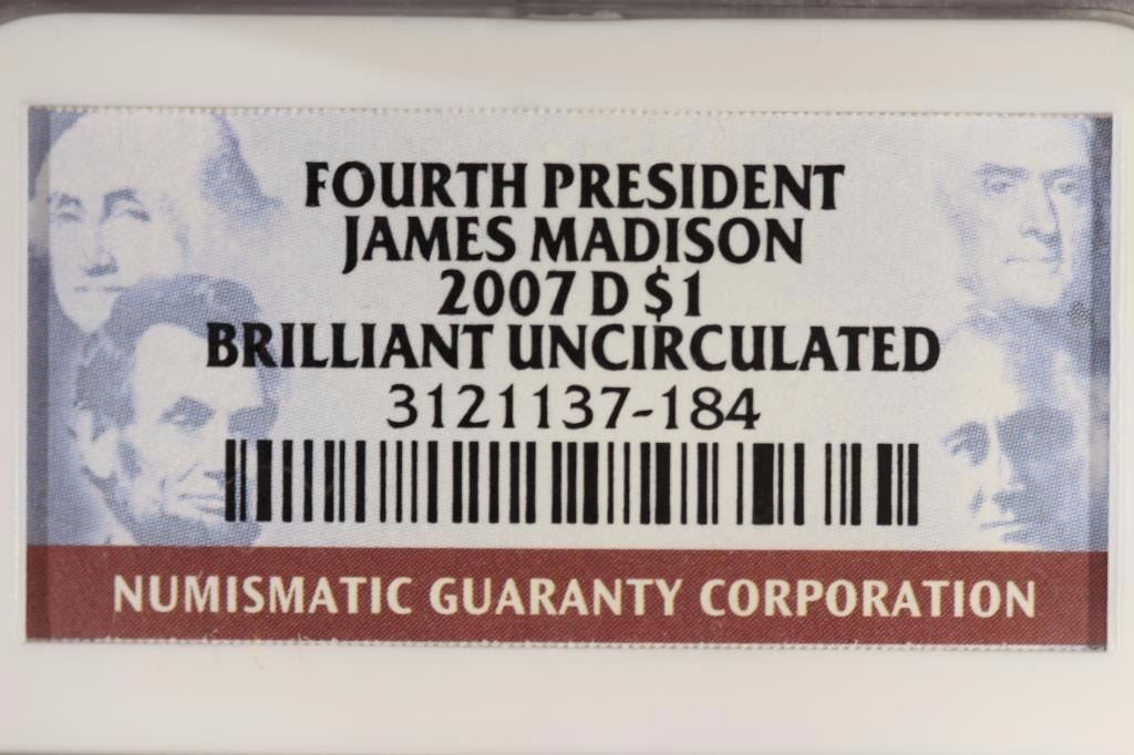 2007-D JAMES MADISON DOLLAR NGC BRILLIANT UNC
