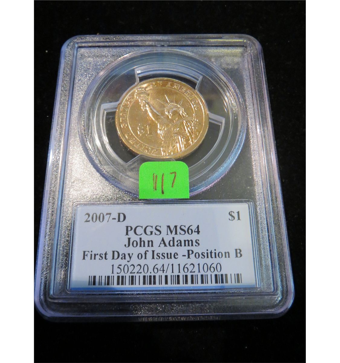 2007 D JOHN ADAMS - PCGS MS64 First Day of Issue - Position B