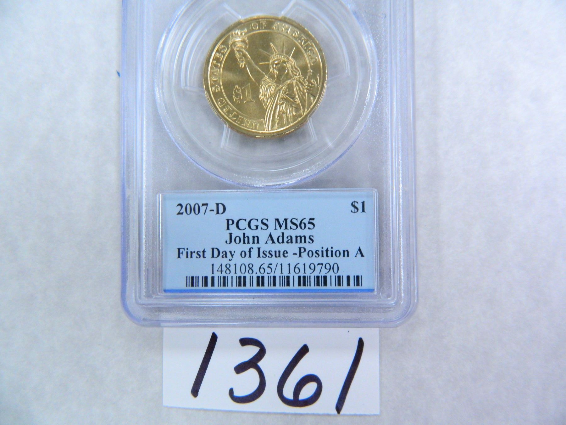 2007-D John Adams Dollar, FIRST DAY OF ISSUE, Position A, PCGS Graded MS65