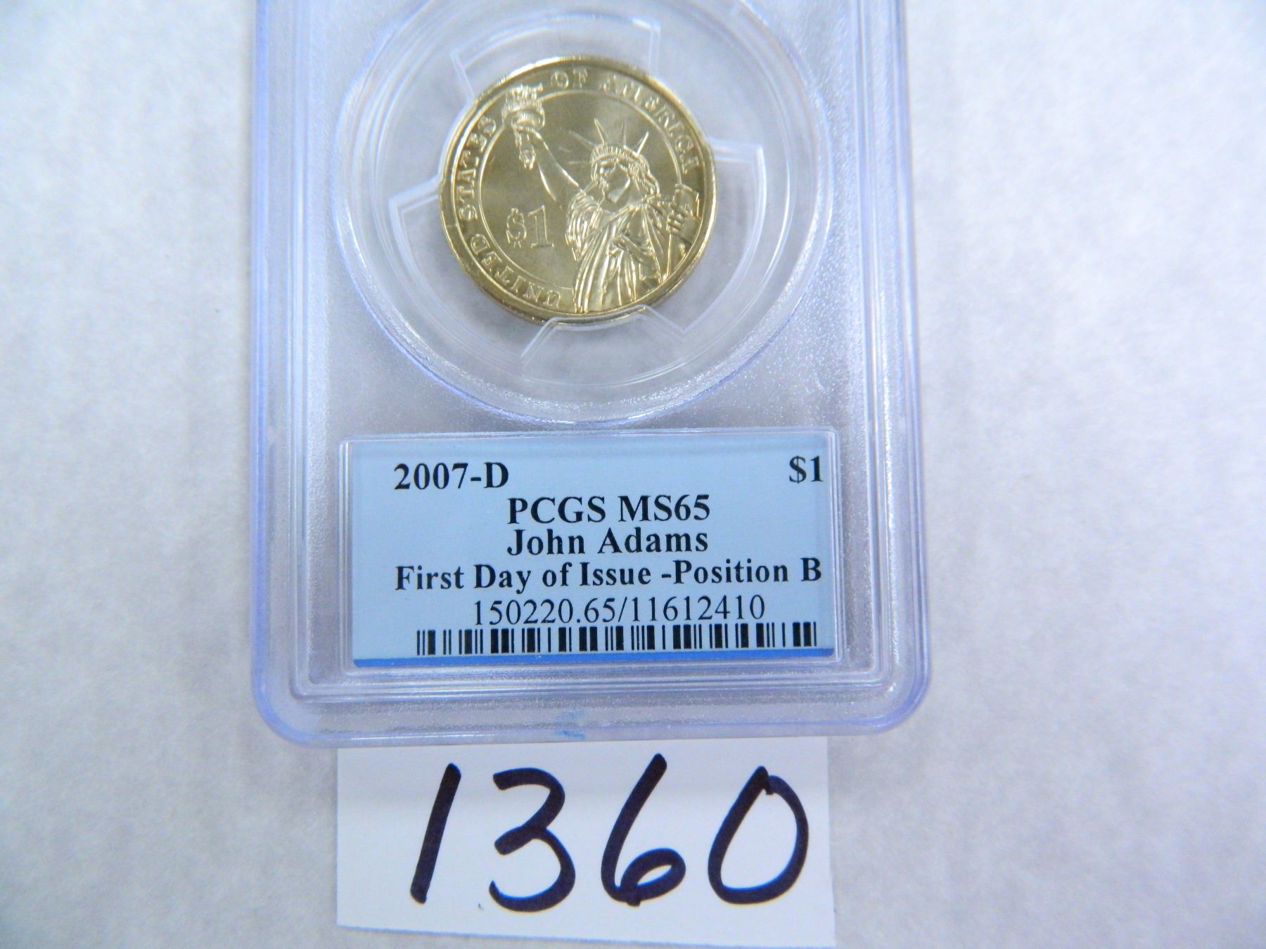 2007-D John Adams Dollar, FIRST DAY OF ISSUE, Position B, PCGS Graded MS65