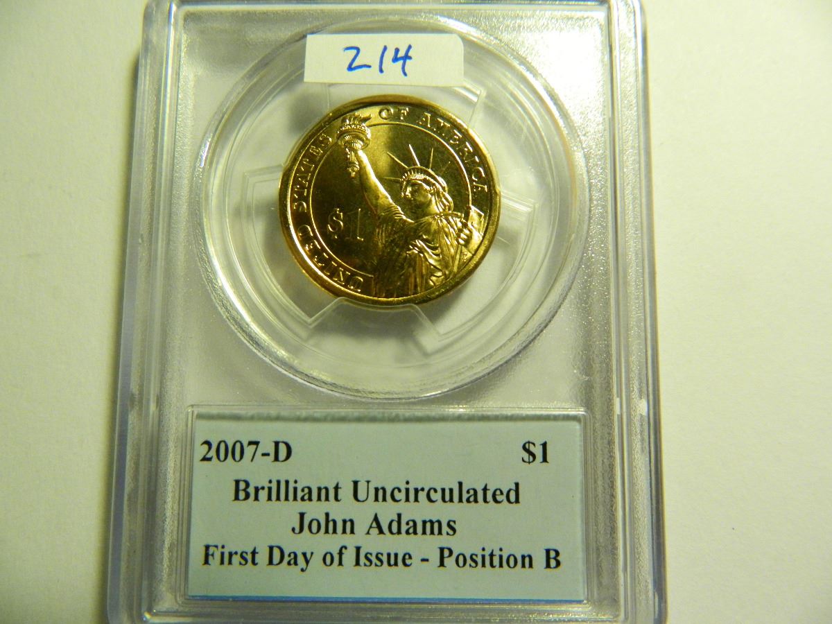 2007-D John Adams Dollar, First Day of Issue - Position B, PCGS certified Brilliant Uncirculated