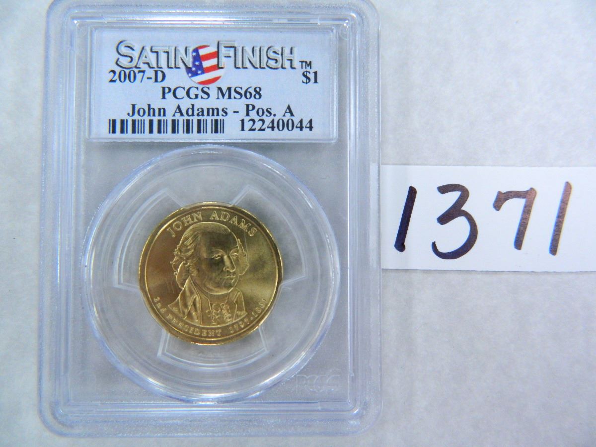 2007-D John Adams Dollar, SATIN FINISH, Position A, PCGS Graded MS68
