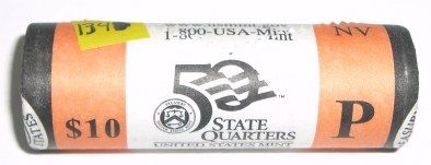 2007-D MINT $10.00 ROLL STATEHOOD QUARTERS "NEVADA" *RARE HARD TO FIND UNC STATE QUARTER MINT ROLL*! ***Coin, Currency & All Items Listed in this auction - Grades, Conditions and Values are not Safe Deposit Coins LLC Responsibilty. Grades, Condition and Values are determined by Consigner(s) & Buyers ONLY