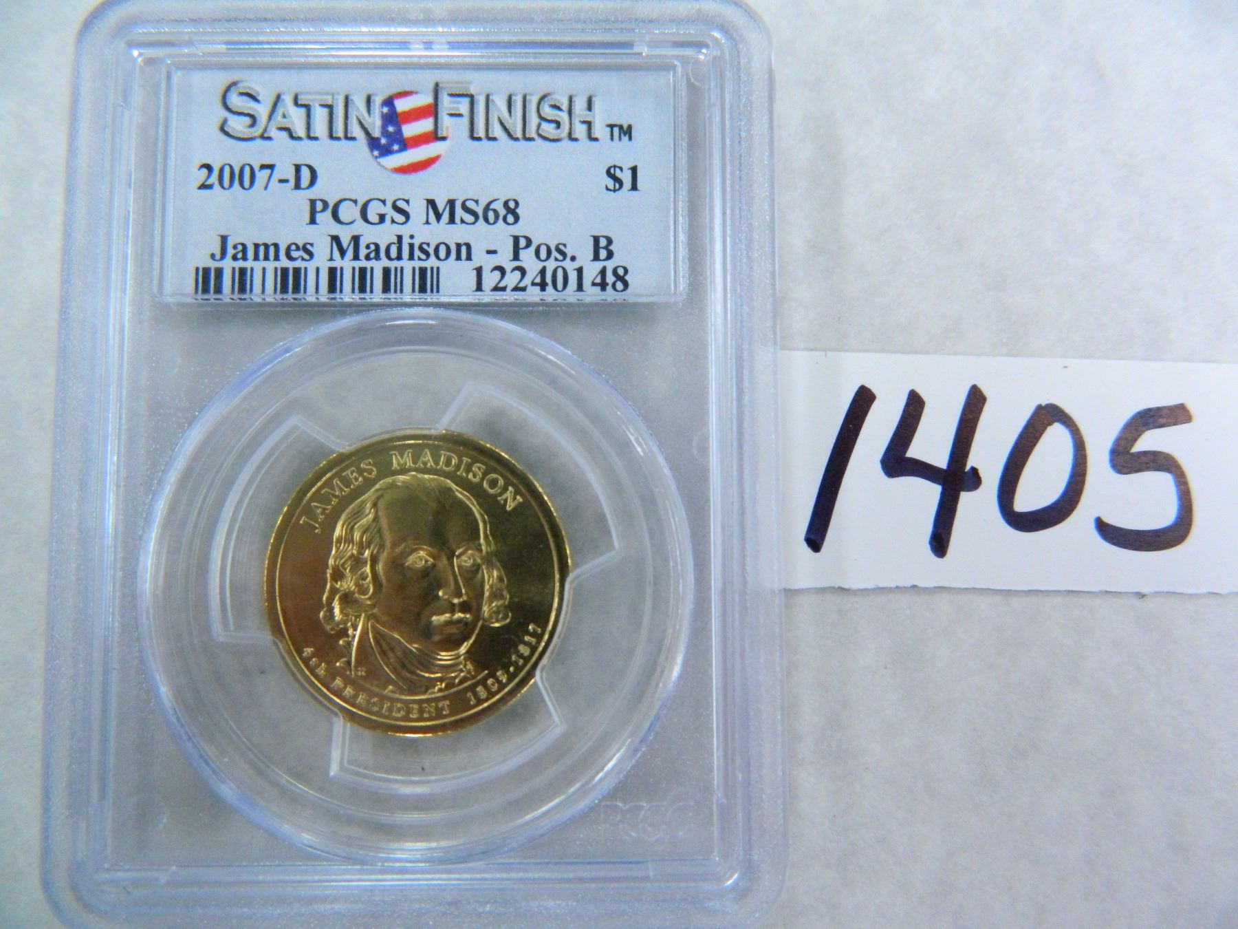 2007-D SATIN FINISH James Madison Dollar, Position B, PCGS Graded MS68
