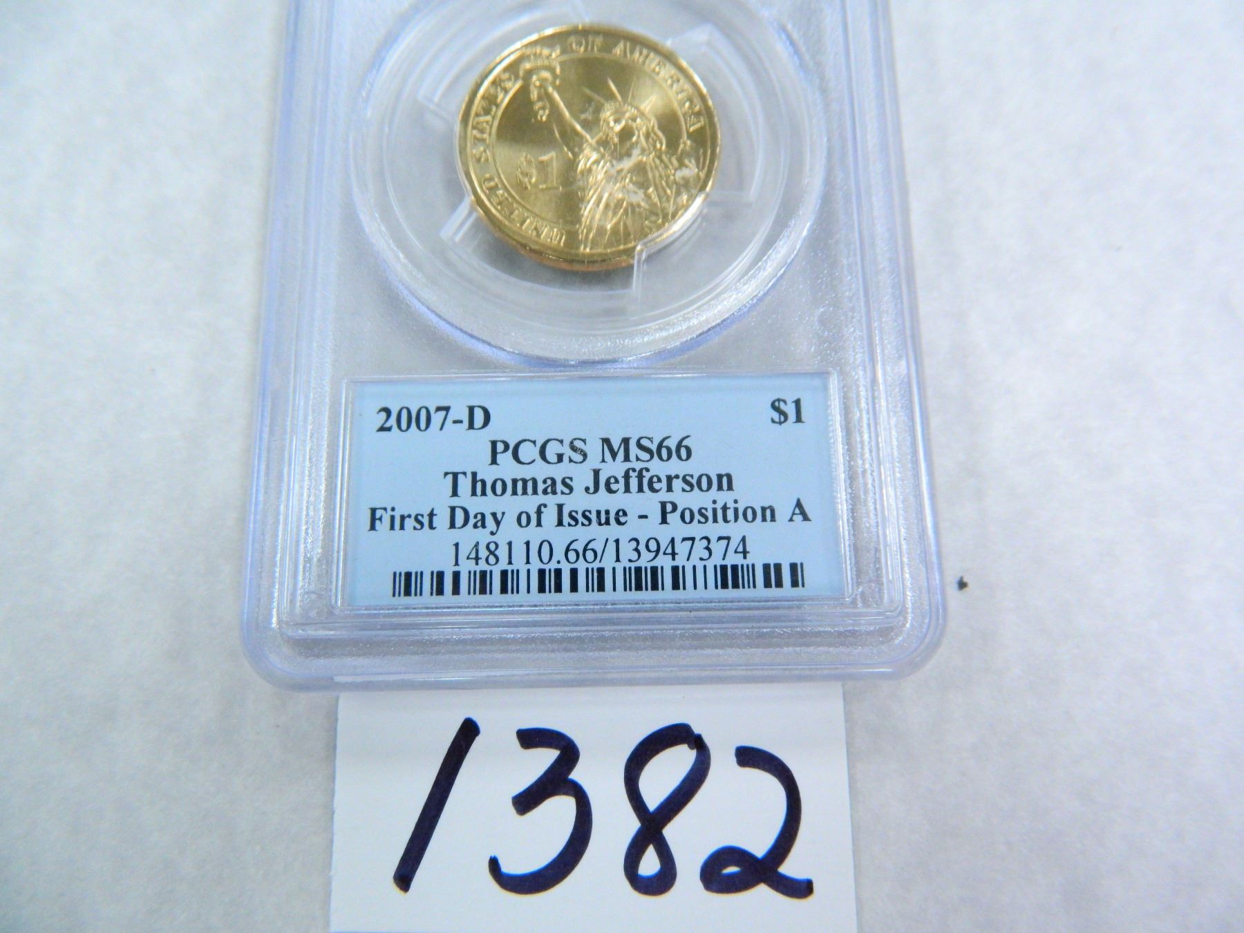 2007-D Thomas Jefferson Dollar First Day of Issue, Position A, PCGS Graded MS66