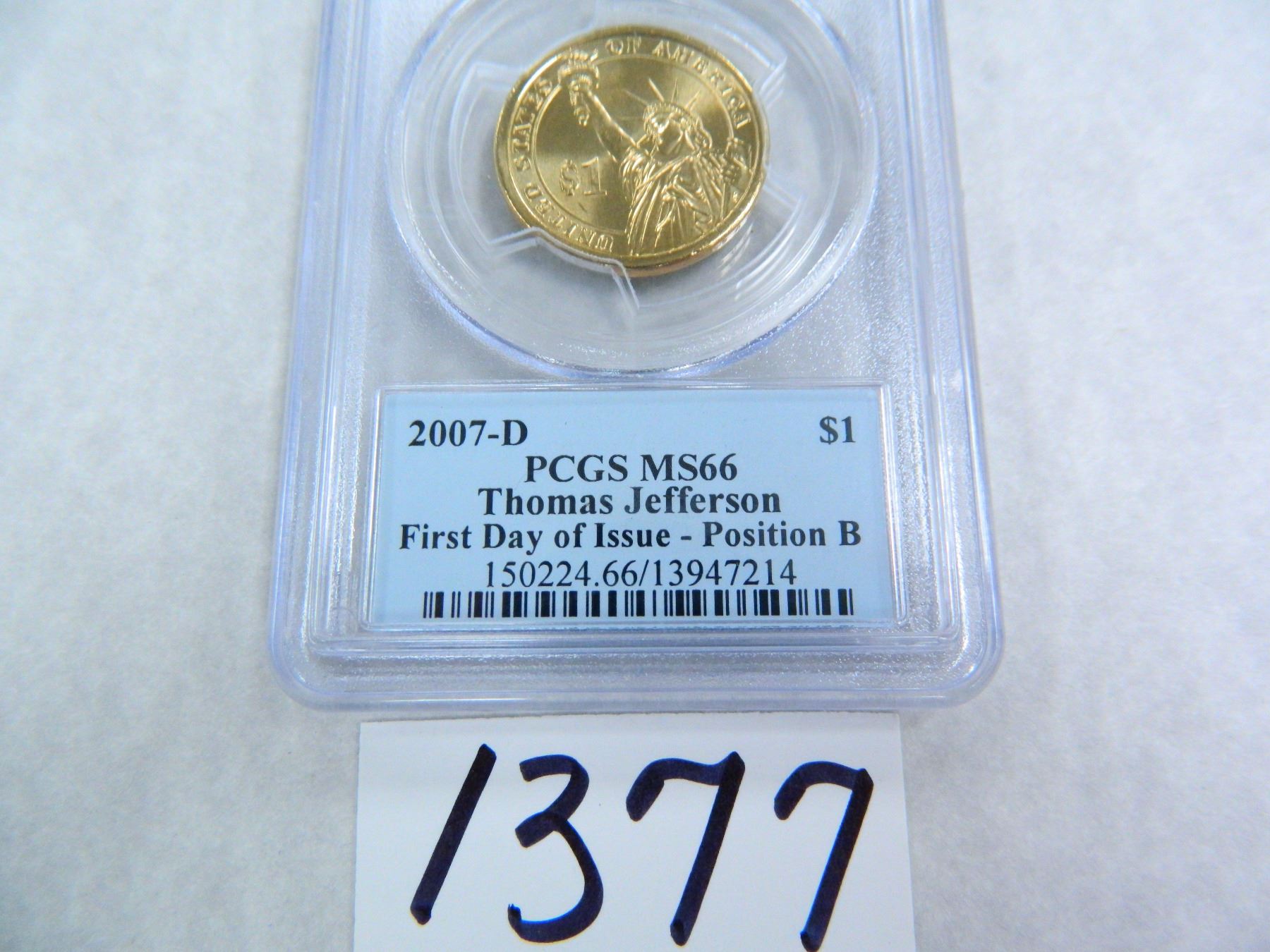 2007-D Thomas Jefferson Dollar First Day of Issue, Position B, PCGS Graded MS66