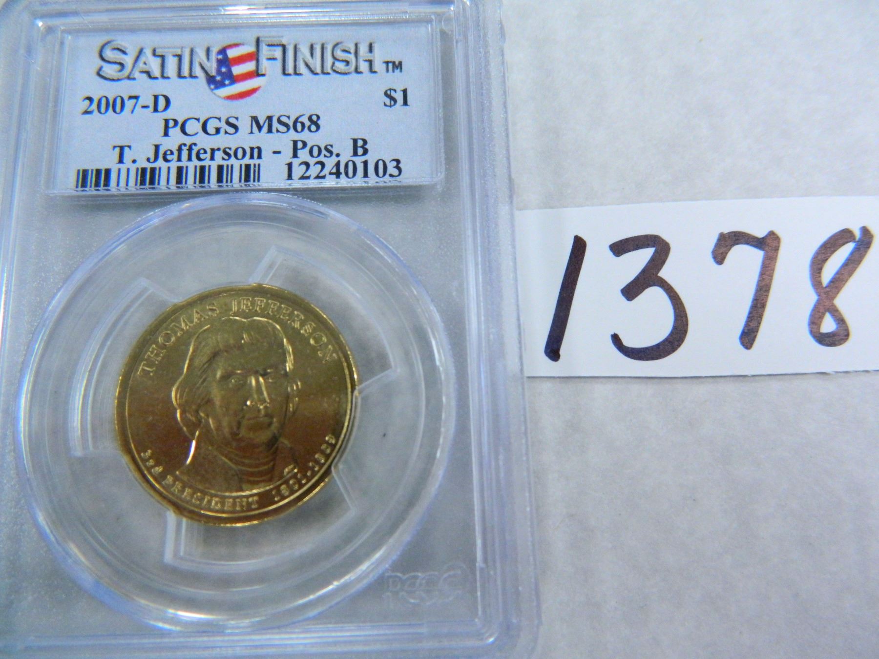 2007-D Thomas Jefferson Dollar, SATIN FINISH, Position B, PCGS Graded MS68