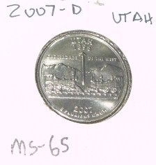 2007-D UTAH QUARTER DOLLAR *RARE MS-65 HIGH GRADE*!! ***Coin, Currency & All Items Listed in this auction - Grades, Conditions and Values are not Safe Deposit Coins LLC Responsibilty. Grades, Condition and Values are determined by Consigner(s) & Buyers ONLY***