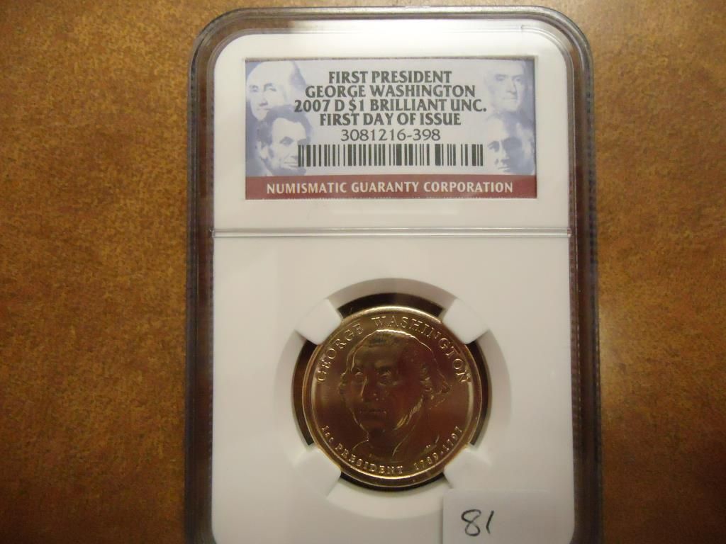 2007-D WASHINGTON DOLLAR NGC BU 1ST DAY ISSUE