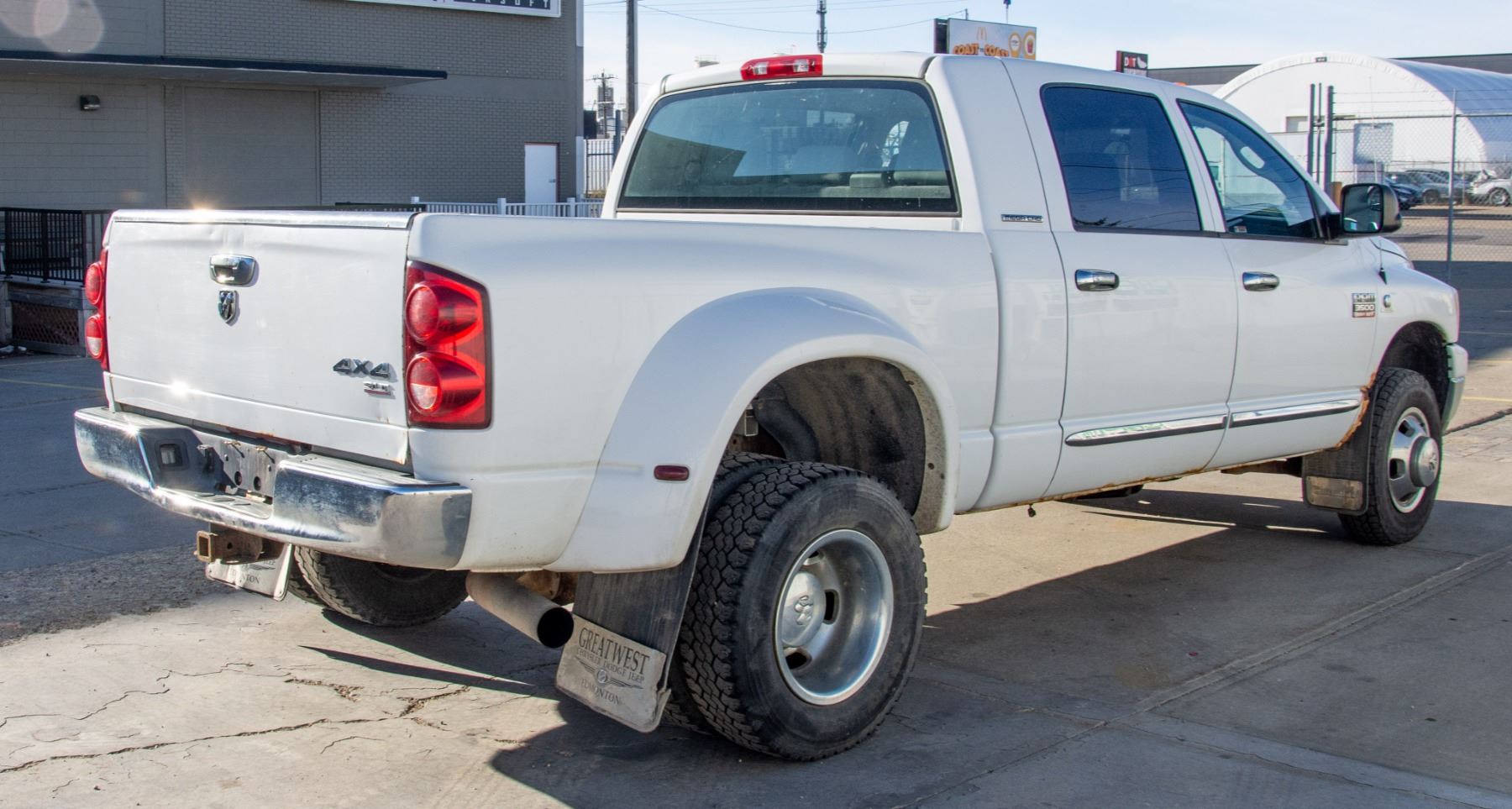 VIN: 3D7MX49A57G776507 KM: 260,000 Engine: V8, 6 CYLINDERS Color: WHITE, POWER RAM (DUALLY) DIESEL, INCLUDES AIR CONDITIONING, CRUISE CONTROL, HEATED SEATS, POWER MIRRORS, AND 4 WHEEL DRIVE. ALL BIDS ARE SUBJECT TO BANK, BAILIFF, OR OWNER APPROVAL. MUST BE 18 OR OLDER TO BID OR PURCHASE, ALL VEHICLES ARE SOLD AS-IS.