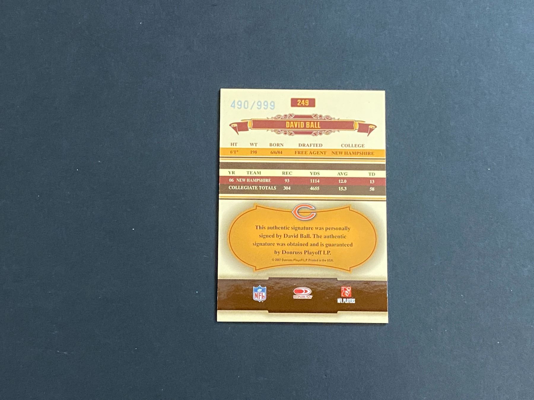2007 DONRUSS FOOTBALL AUTOGRAPH DAVID BELL #490/999 N.F.L AUTOGRAPH CARD