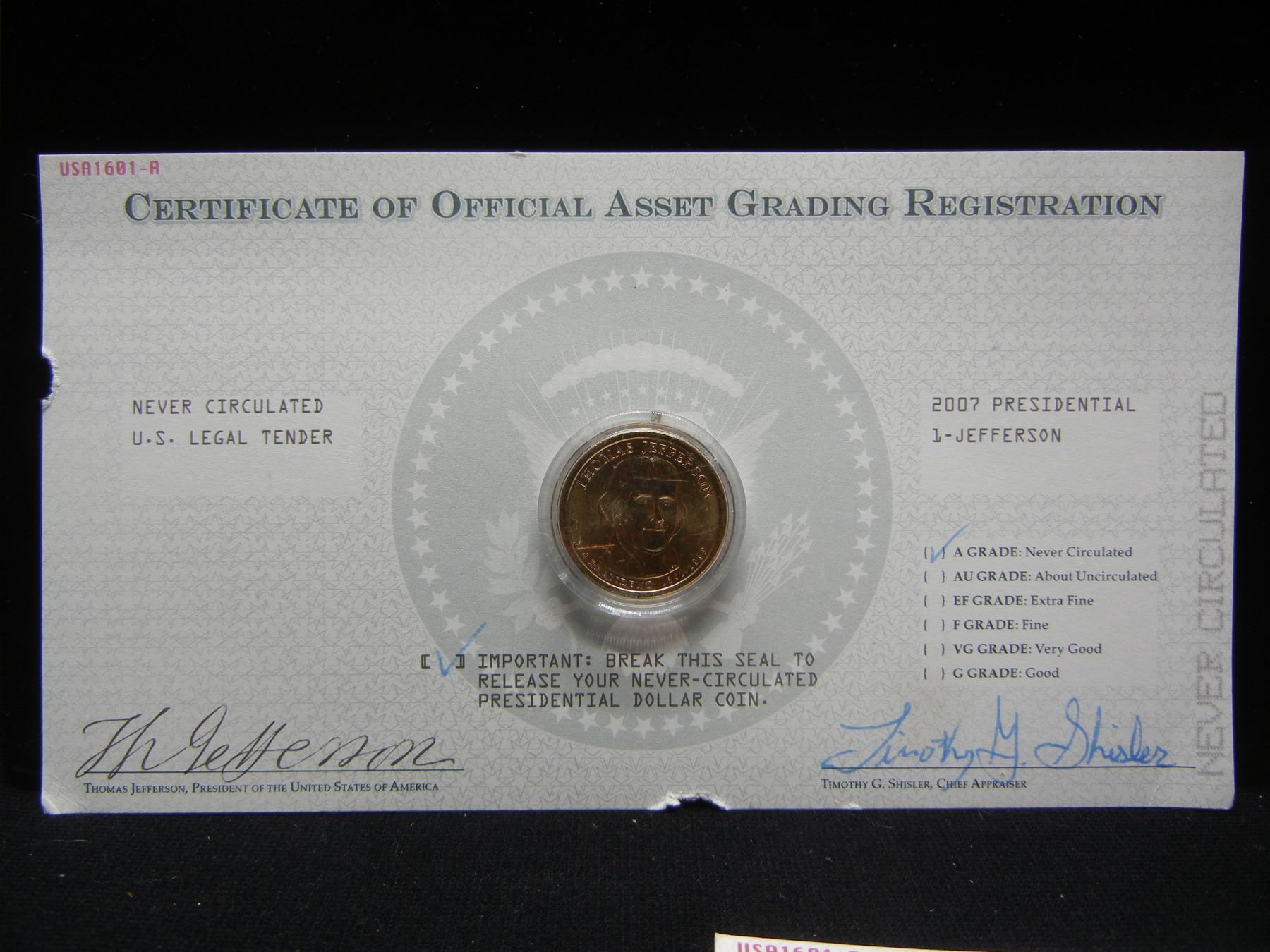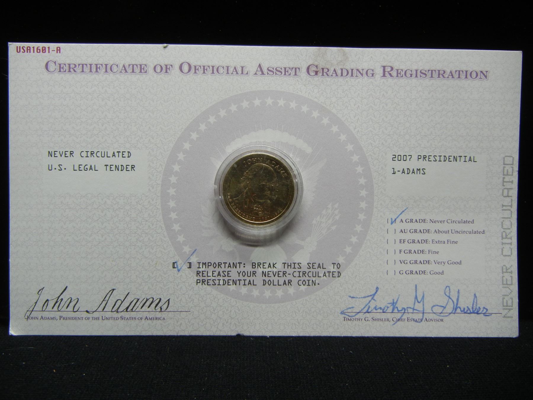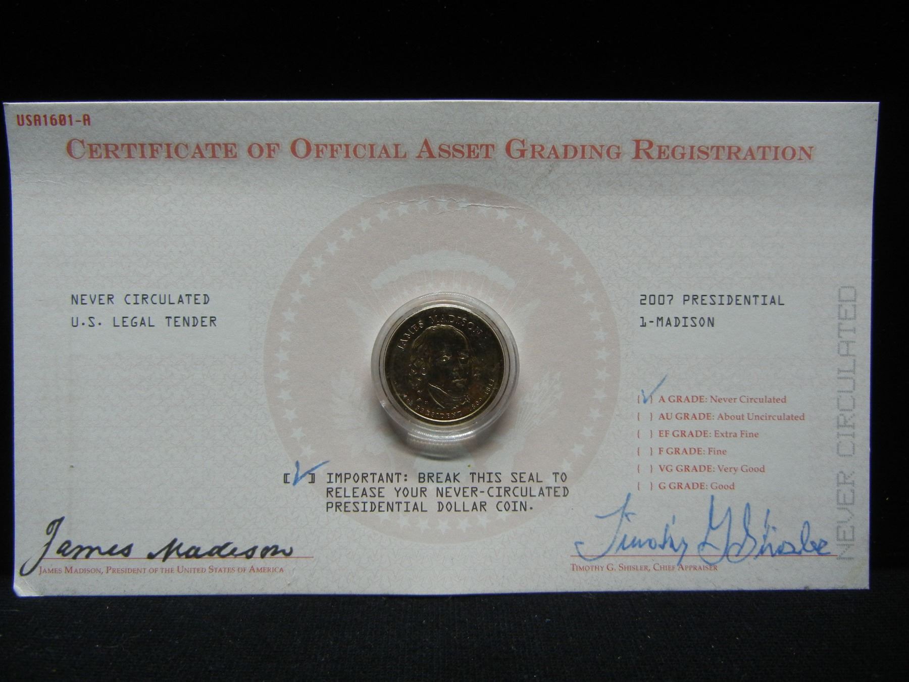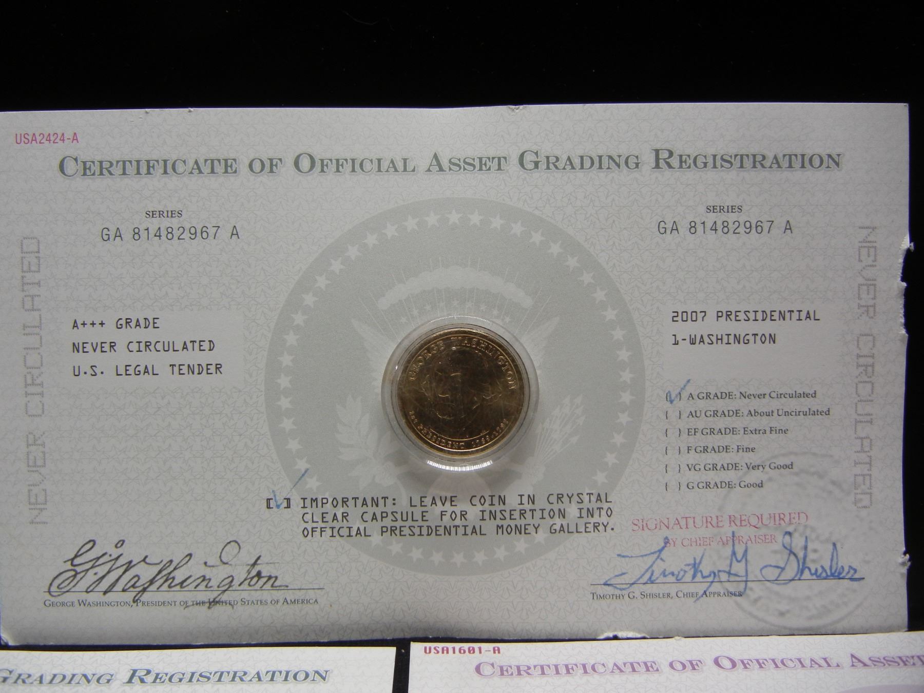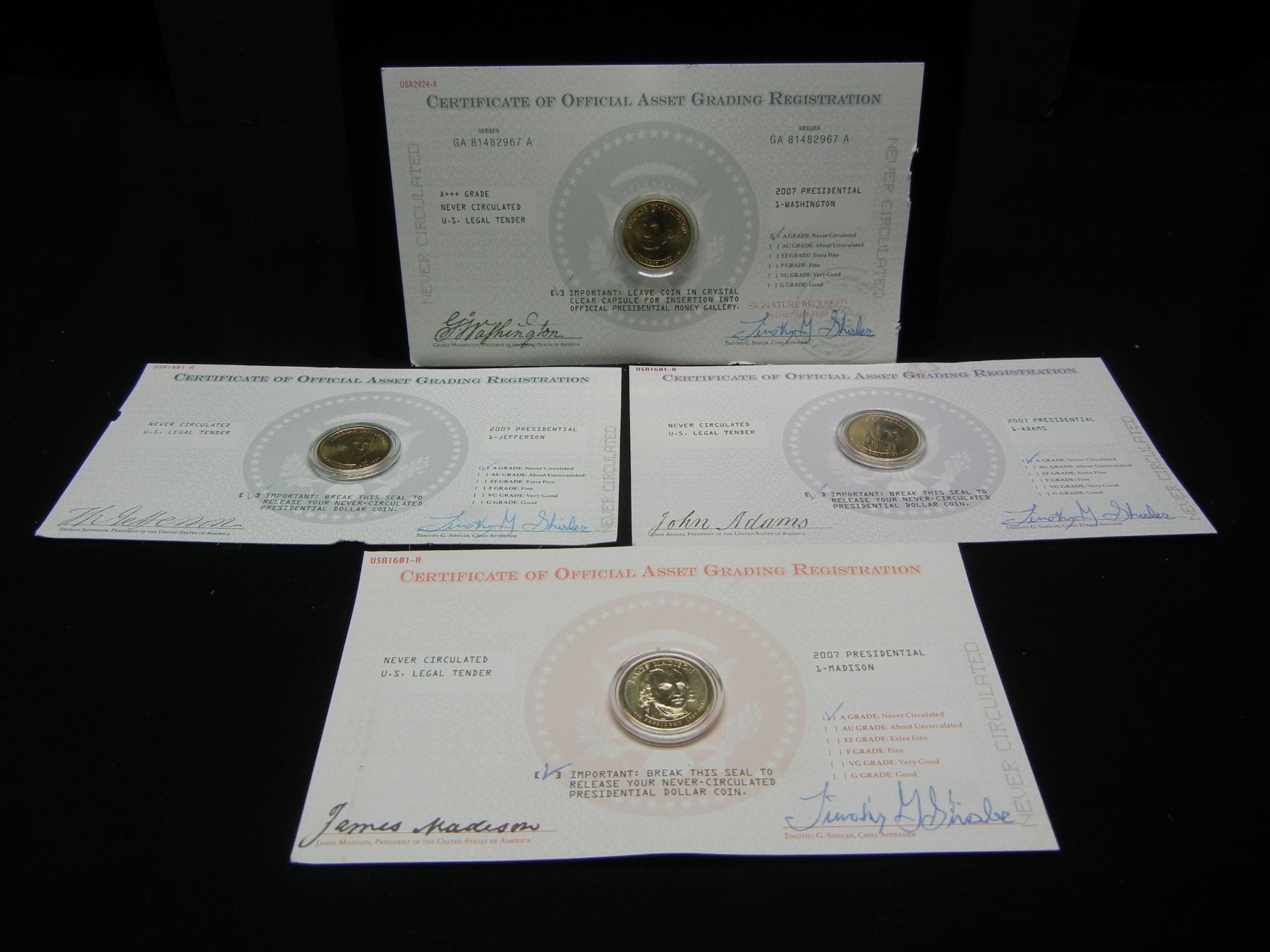 2007 George Washington, Thomas Jefferson, John Adams and James Madison UNC Dollars Graded By Offical Asset Grading Registration
