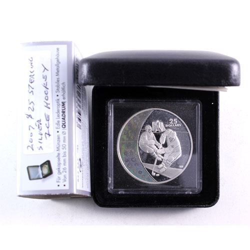 2007 Ice Hockey Olympic $25 Sterling Silver Hologram Coin in black display box with COA.