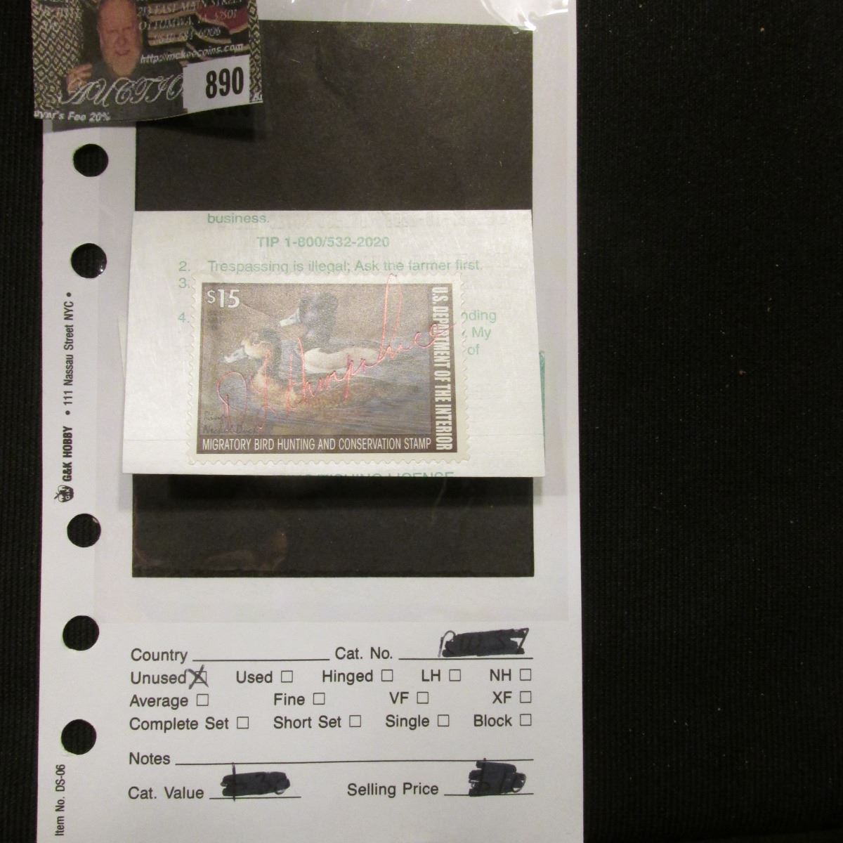 2007 Iowa Hunting License with attached Migratory Bird Hunting Conservation Stamp signed by D.L. Hampshire, owner of this estate.