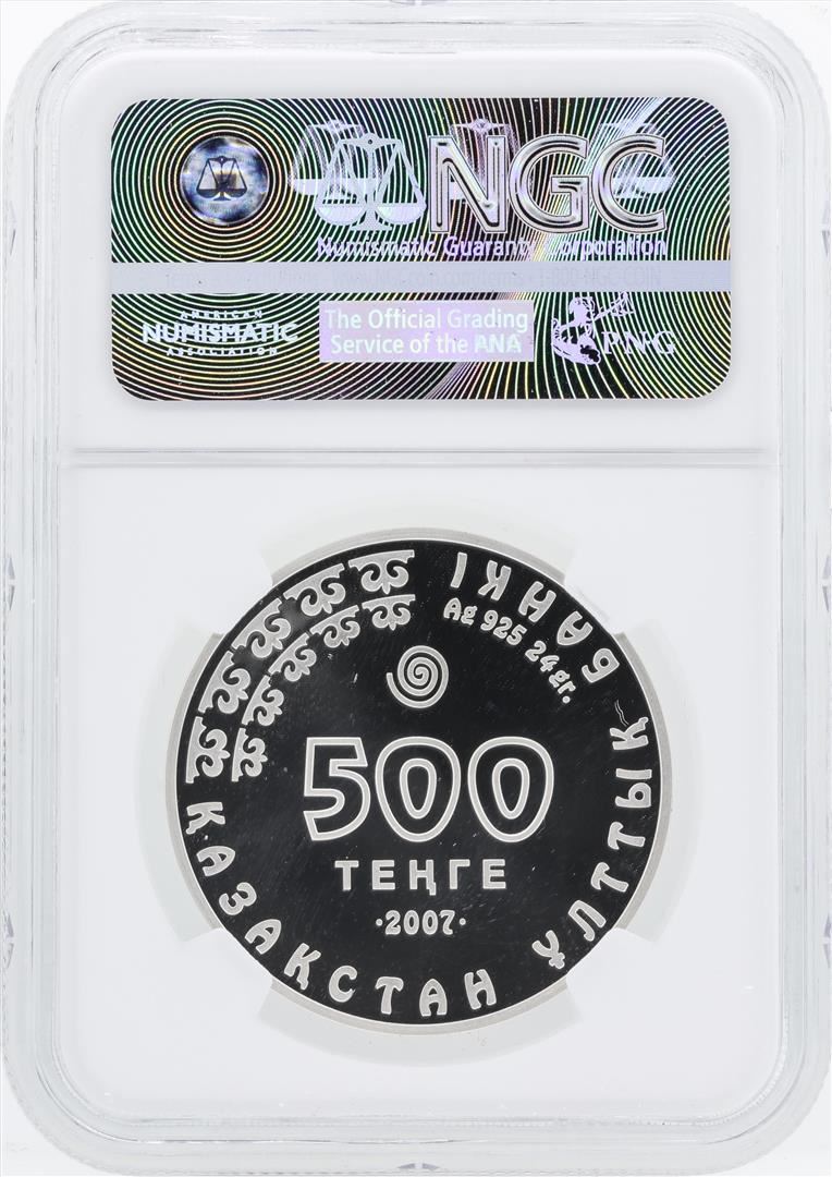 One 2007 Kazakhstan 500 Tenge Spoon Bill Silver Coin NGC PF69 Ultra Cameo.