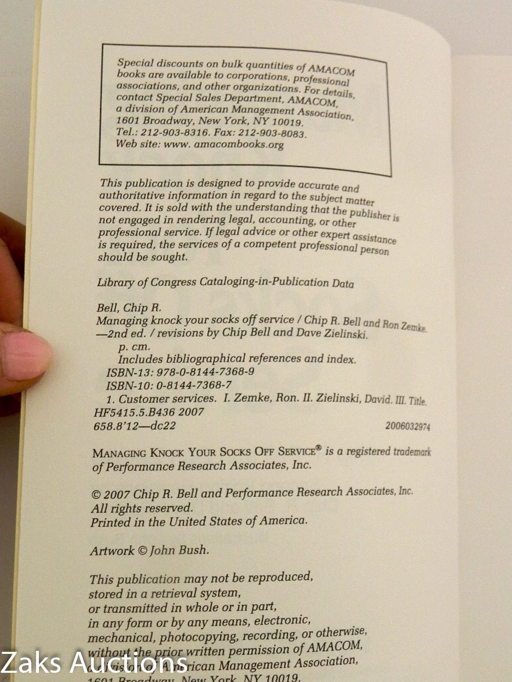 2007 MANAGING KNOCK YOUR SOCKS OFF SERVICE - CHIP R. BELL & RON ZEMKE.SOFTCOVER