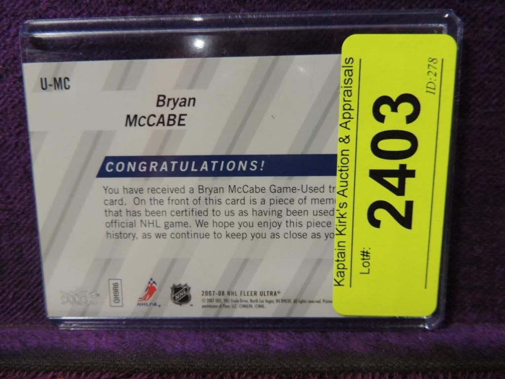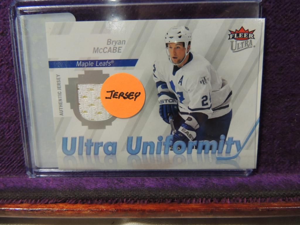 2007-08 NHL FLEER ULTRA BRYAN MCCABE HOCKEY CARD, JERSEY CARD. JERSEY SWATCH. TRADING CARD. IN GOOD CONDTION IN PROTECTIVE PLASTIC SLEEVE. AS SHOWN. SEE PHOTO FOR MORE DETAILS.