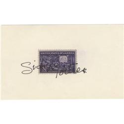 <B>Cornel Wilde Autograph.</B></I> A 3" x 5" card, with a 13-cent commemorative postage stamp affixed, signed by the <...